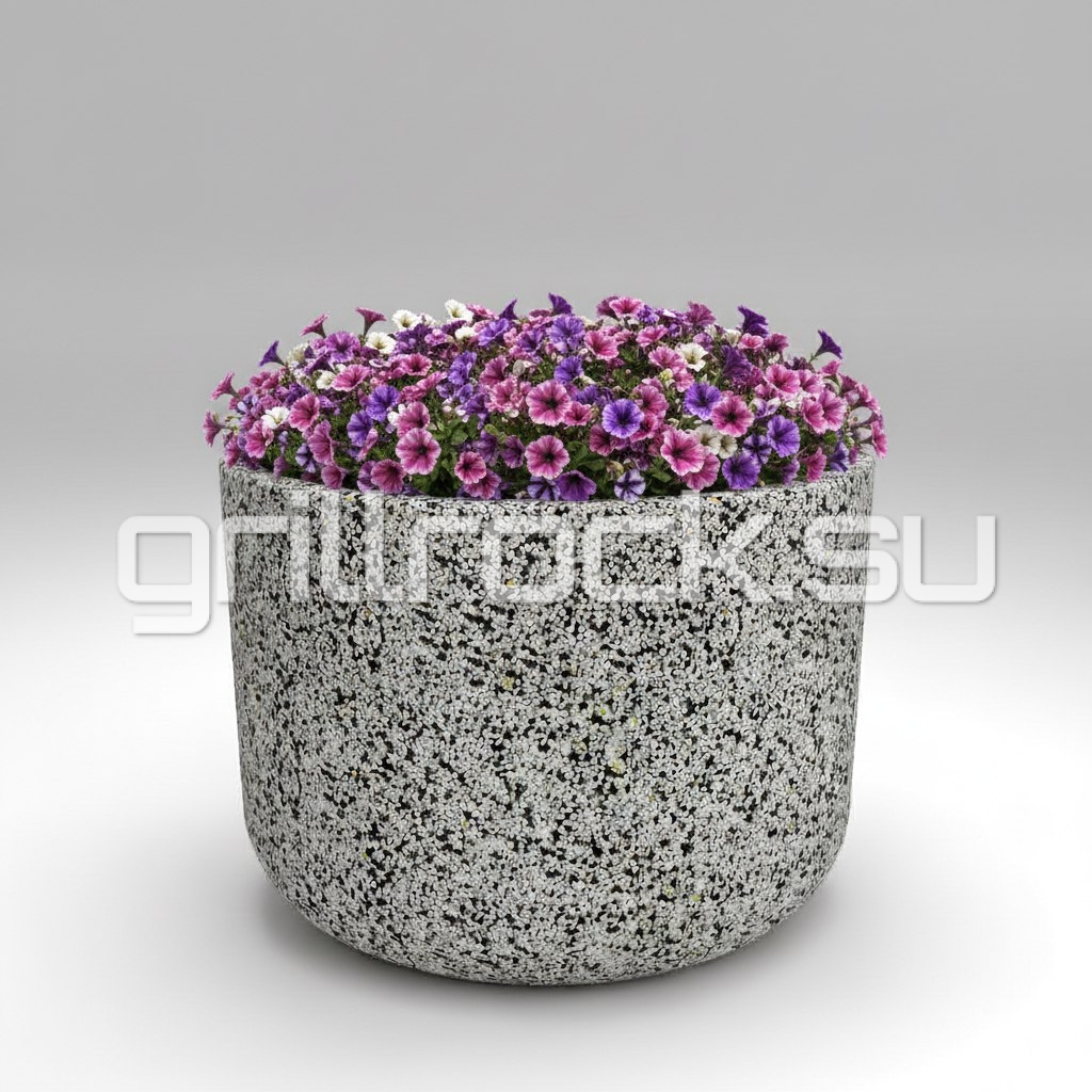 Вазон “Юрмала” прекрасно вписывается в любую архитектуру современного города. Изготовлен из смеси высокопрочного архитектурного бетона (марка М350, морозостойкость F300) и натурального камня (серый и белый мрамор, «шахматка», Питерский (Московский) гравий, красный гранит, златолит, Чёрный мрамор (андезит)). Каменная крошка не наклеена сверху, а находится в составе изделия (фракция от 3 до 15 мм).