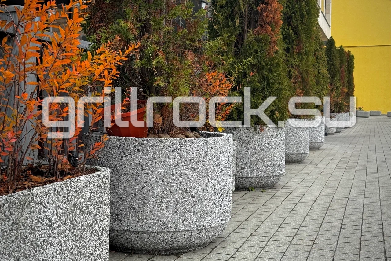 Декоративные бетонные цветочницы (клумбы) «ГрильРок» выполнены в лучших традициях ландшафтного дизайна, прослужат долгие годы и всегда будут радовать глаз. Такие же изделия из других материалов постепенно утрачивают внешний вид и им нужен уход (окраска, чистка). Наша продукция со временем не тускнеет и не облазит, её достаточно просто помыть водой. В наличии имеются разные фактуры камня.