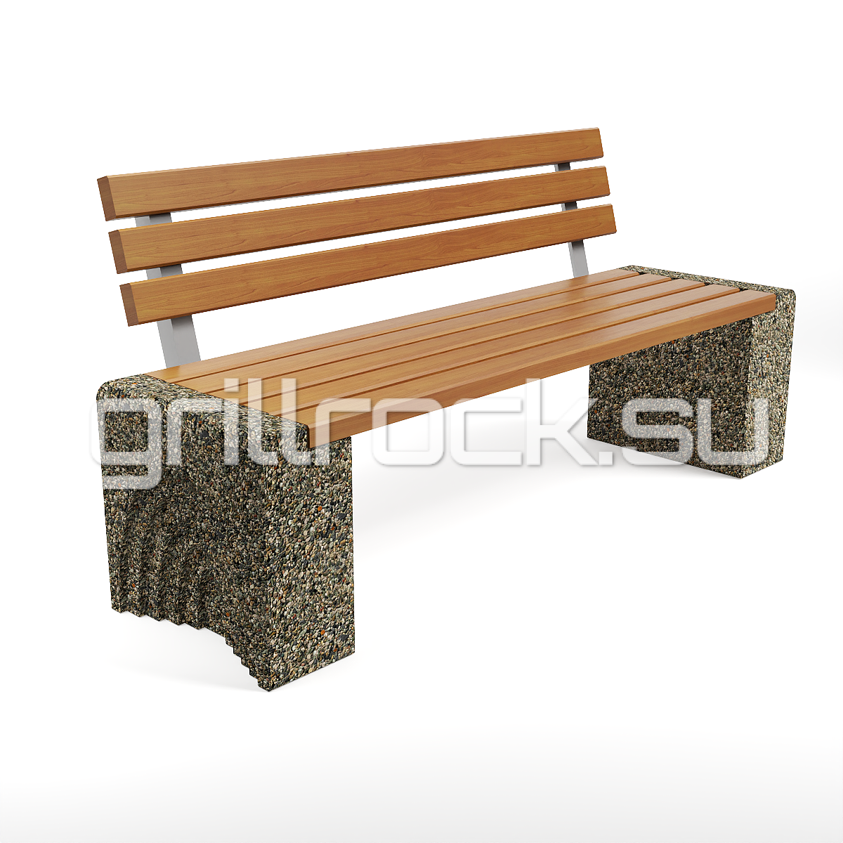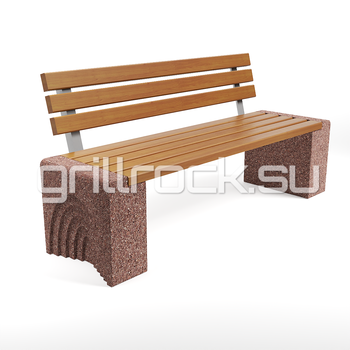 Высокопрочный бетон марки М350. Повышенная морозостойкость F300. Каменная крошка не налеплена сверху, а целиком находится в массе изделия. Древесина: брус – обработана импортным покрытием с антисептиком. Скамейка является антивандальной.