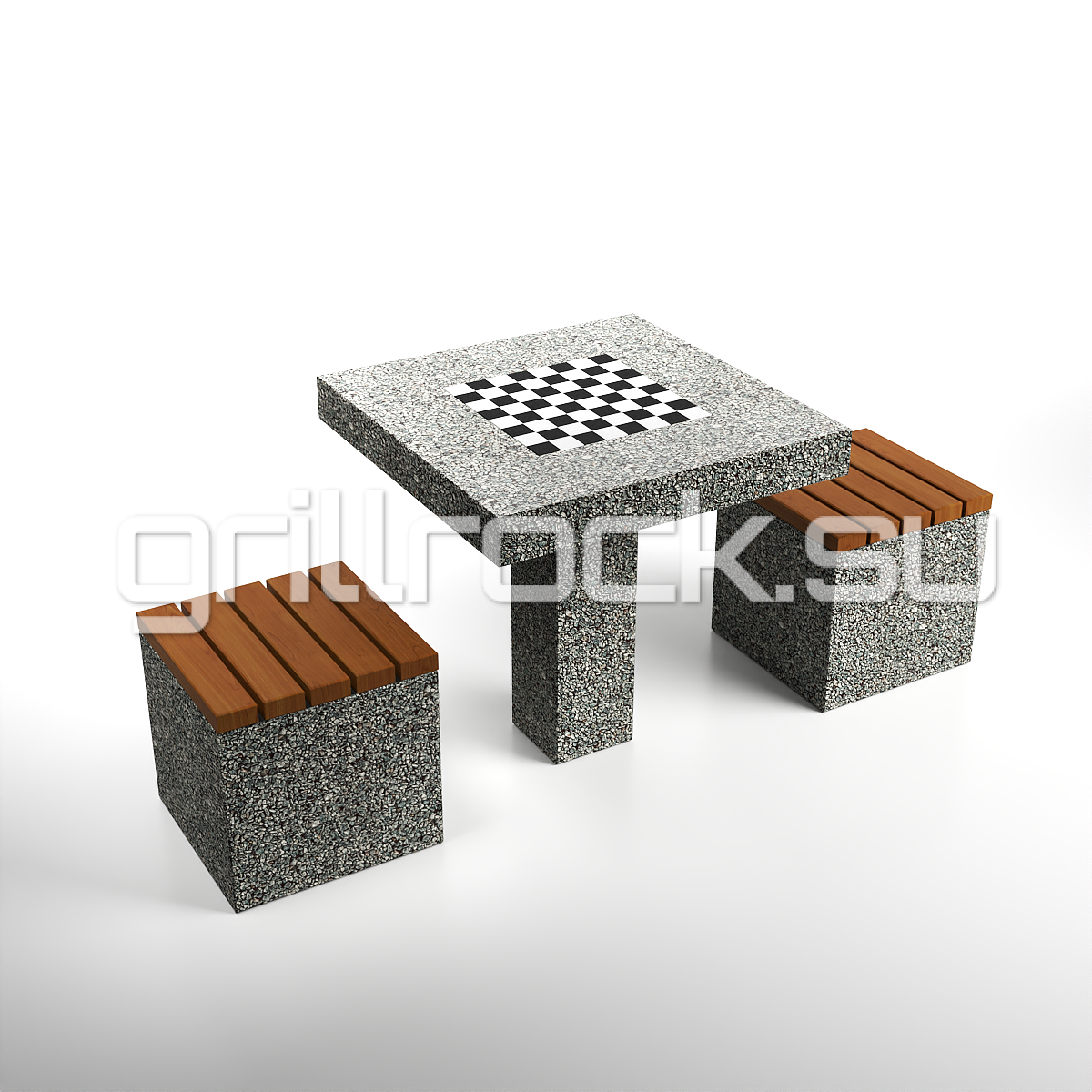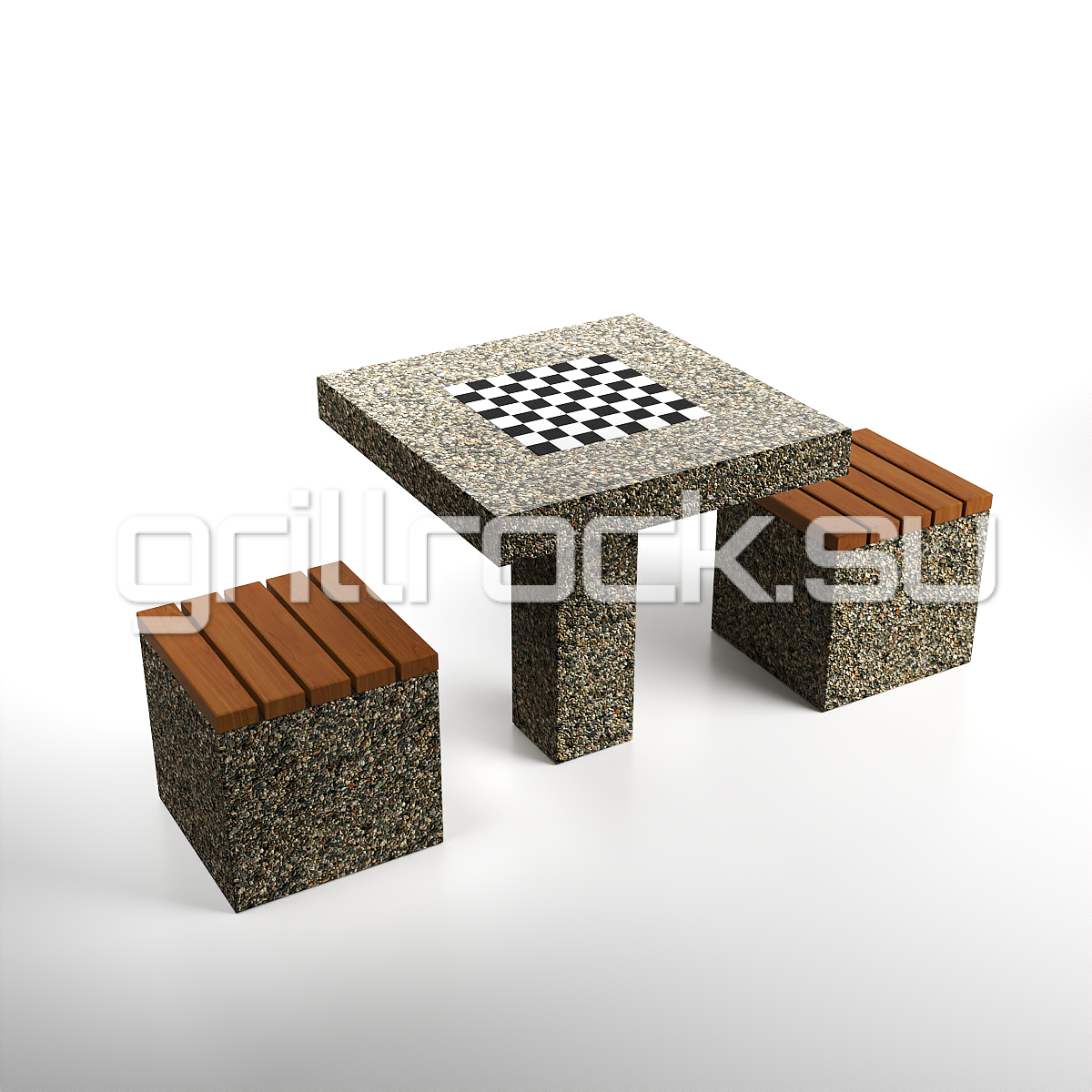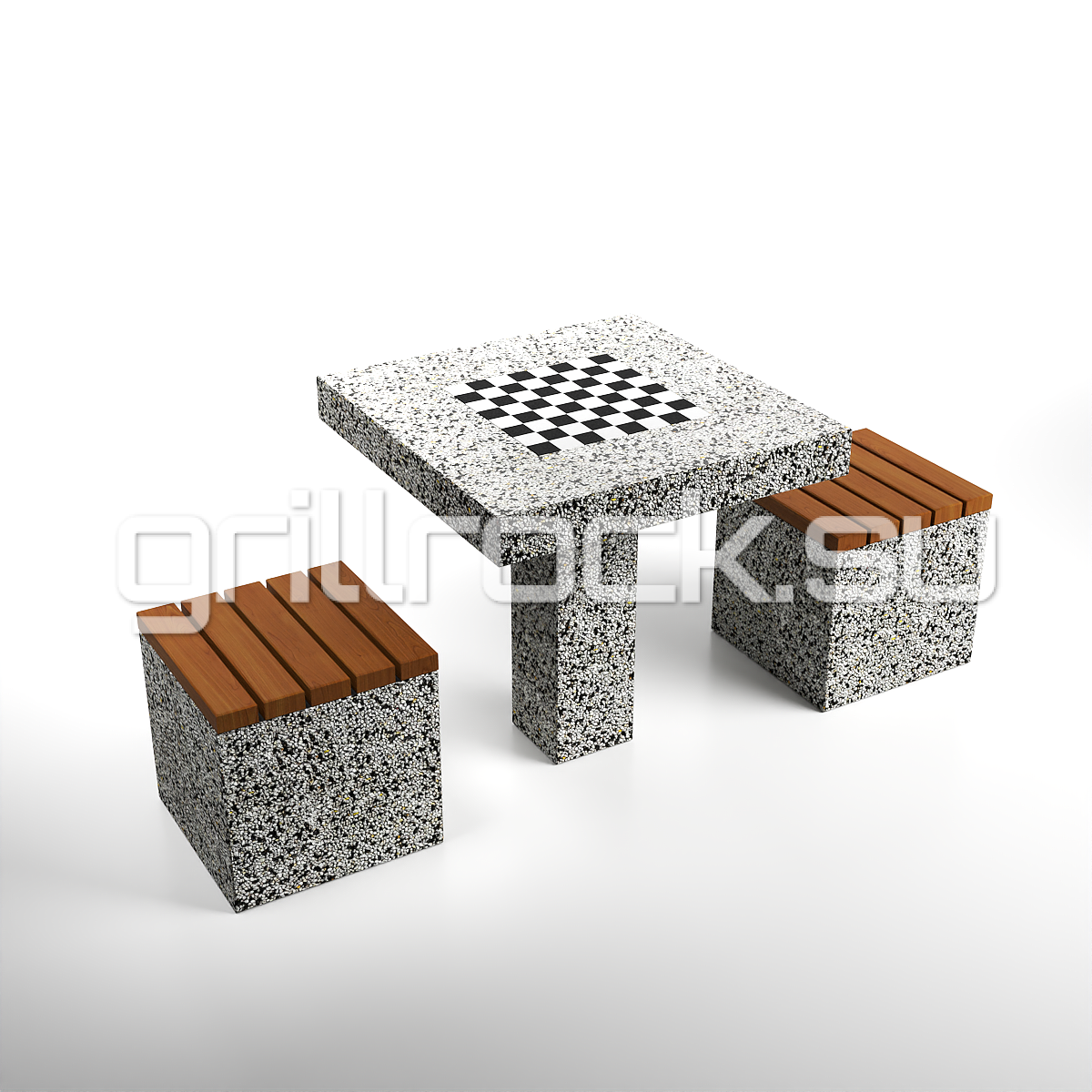 Высокопрочный бетон марки М350. Повышенная морозостойкость F300. Каменная крошка не налеплена сверху, а целиком находится в массе изделия.