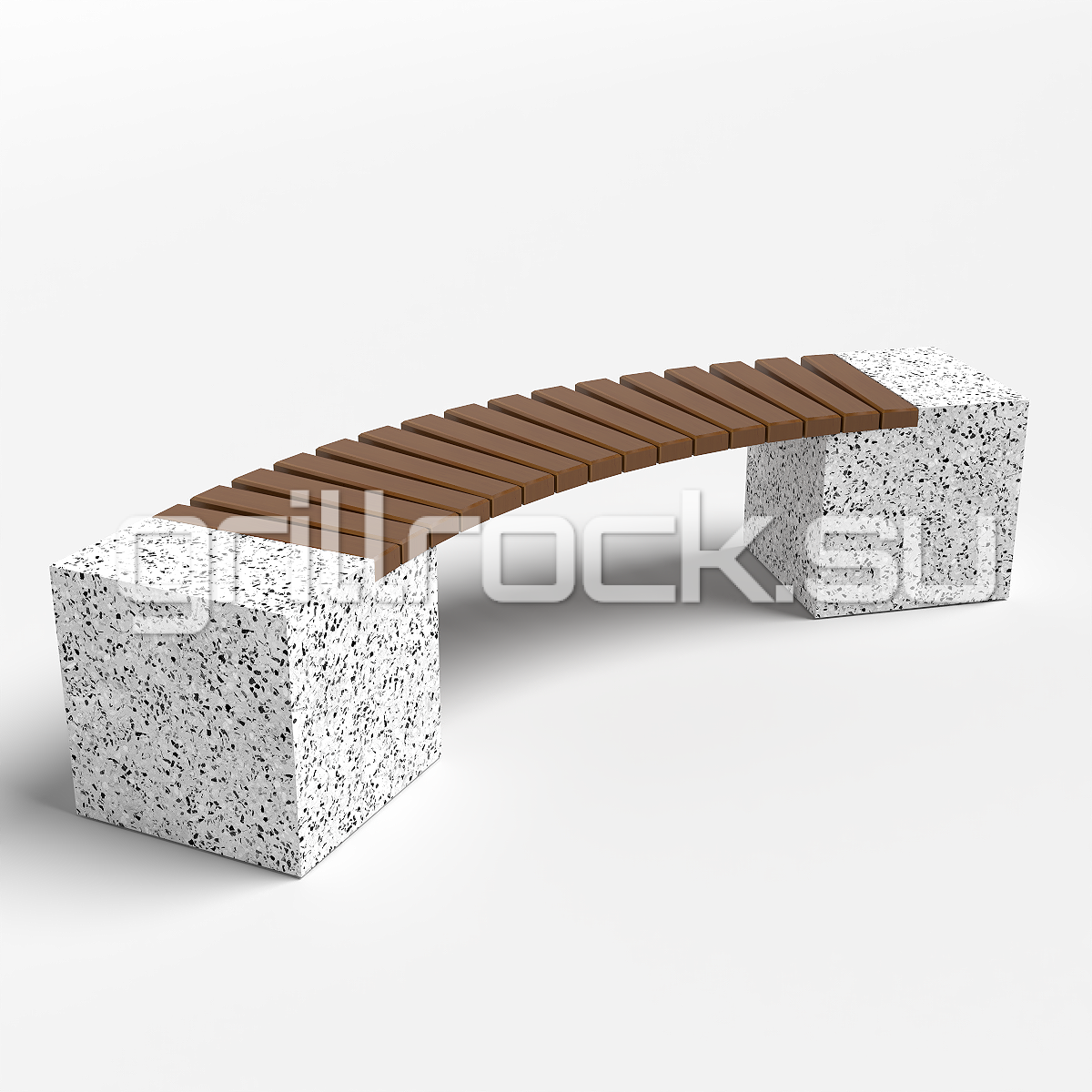 Высокопрочный бетон марки М350. Повышенная морозостойкость F300. Каменная крошка не налеплена сверху, а целиком находится в массе изделия. Древесина: брус – обработана импортным покрытием с антисептиком. Скамейка является антивандальной.