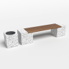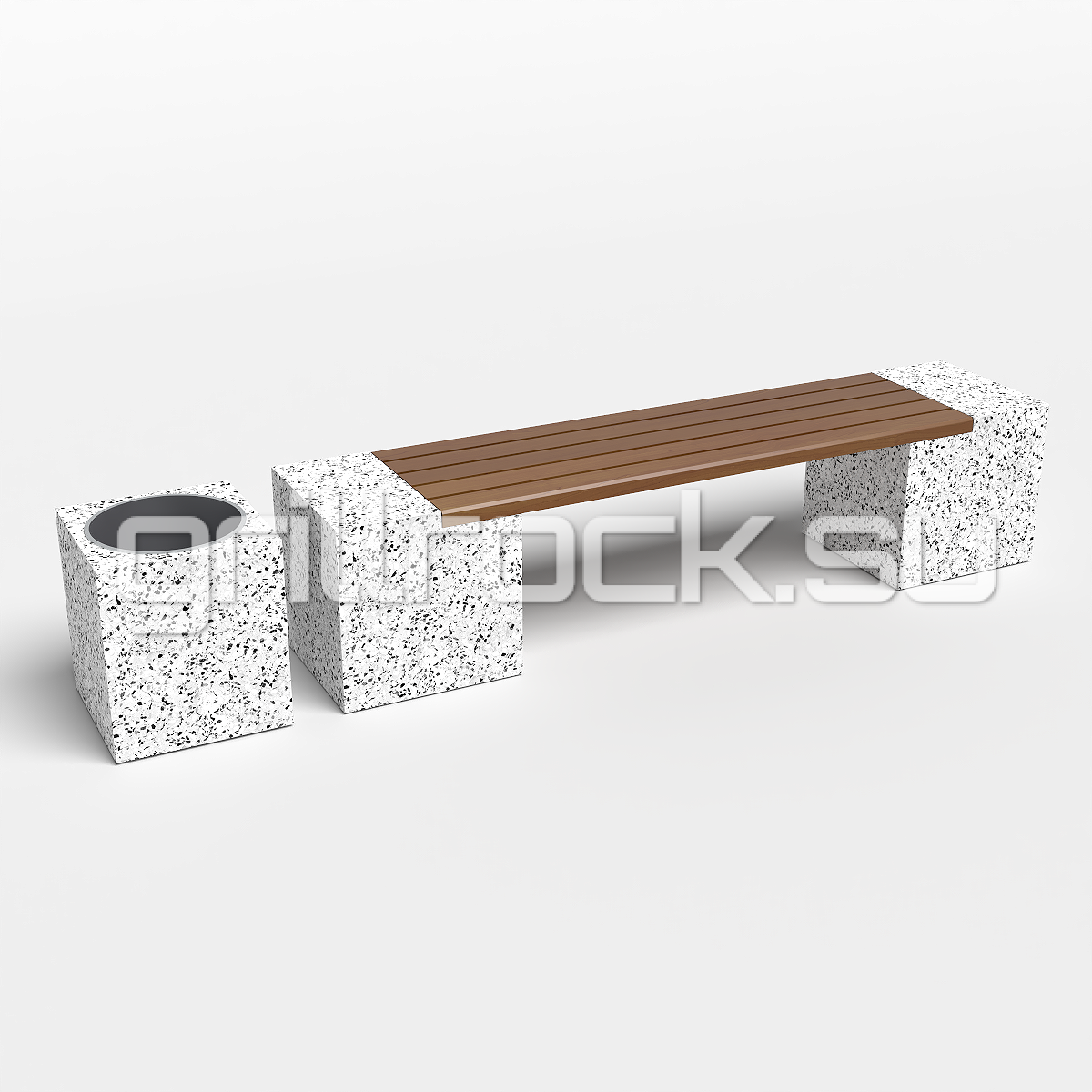 Скамейка “Евро 2” с квадратной урной прекрасно вписывается в любую архитектуру современного города. Изготовлена из смеси высокопрочного архитектурного бетона (марка М350, морозостойкость F300) и натурального камня (серый, чёрный и белый мрамор, «шахматка», красный гранит, Питерский (Московский) гравий). Каменная крошка не наклеена сверху, а находится в составе изделия (фракция от 3 до 15 мм). Рейки выполнены из дерева, пропитаны импортным раствором с антисептиком.