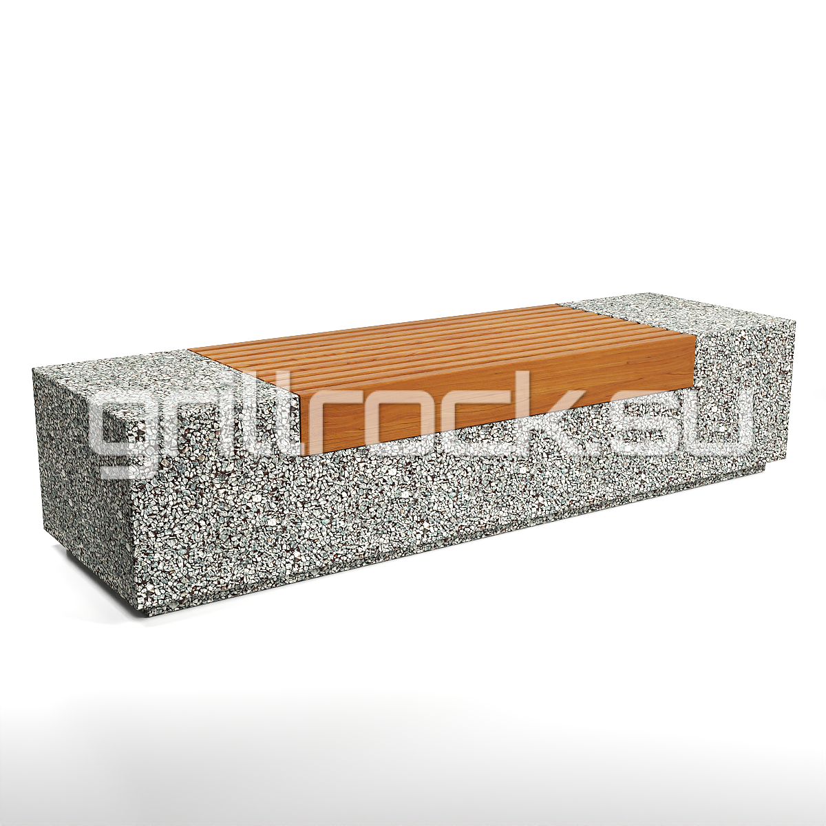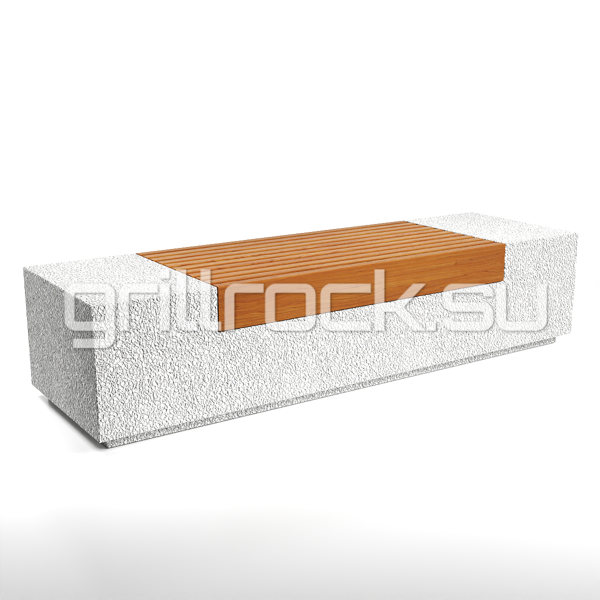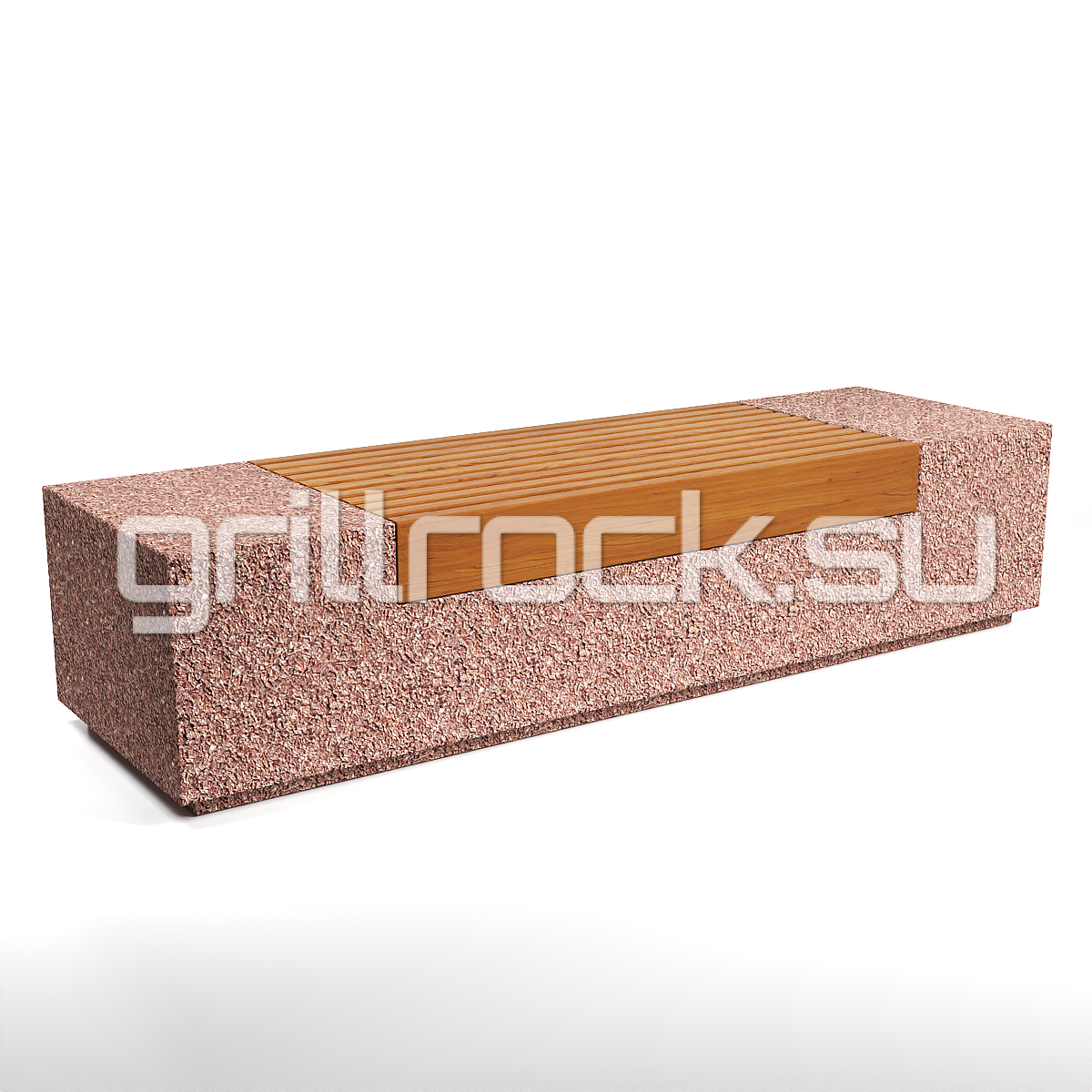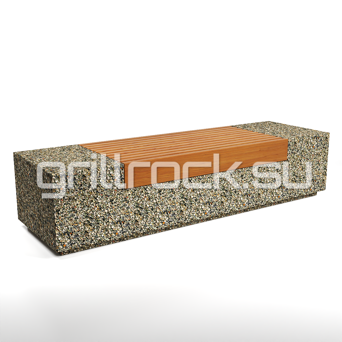 Высокопрочный бетон марки М350. Повышенная морозостойкость F300. Каменная крошка не налеплена сверху, а целиком находится в массе изделия. Древесина: брус – обработана импортным покрытием с антисептиком. Скамейка является антивандальной.