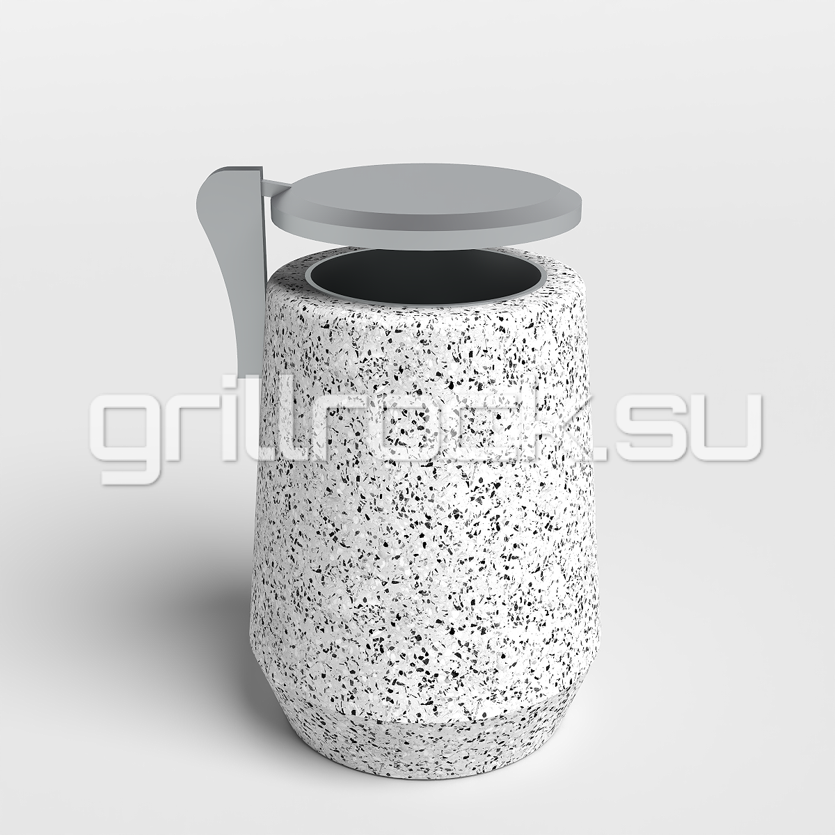 Уличная урна “Дублин с крышкой” одинаково хорошо будет смотреться у входа любого здания, коттеджа или подъезда многоквартироного дома. Изготовлена из смеси высокопрочного архитектурного бетона (марка М350, морозостойкость F300) и натурального камня (серый, чёрный и белый мрамор, «шахматка», красный гранит, Питерский (Московский) гравий). Каменная крошка не наклеена сверху, а находится в составе изделия (фракция от 3 до 15 мм).