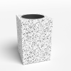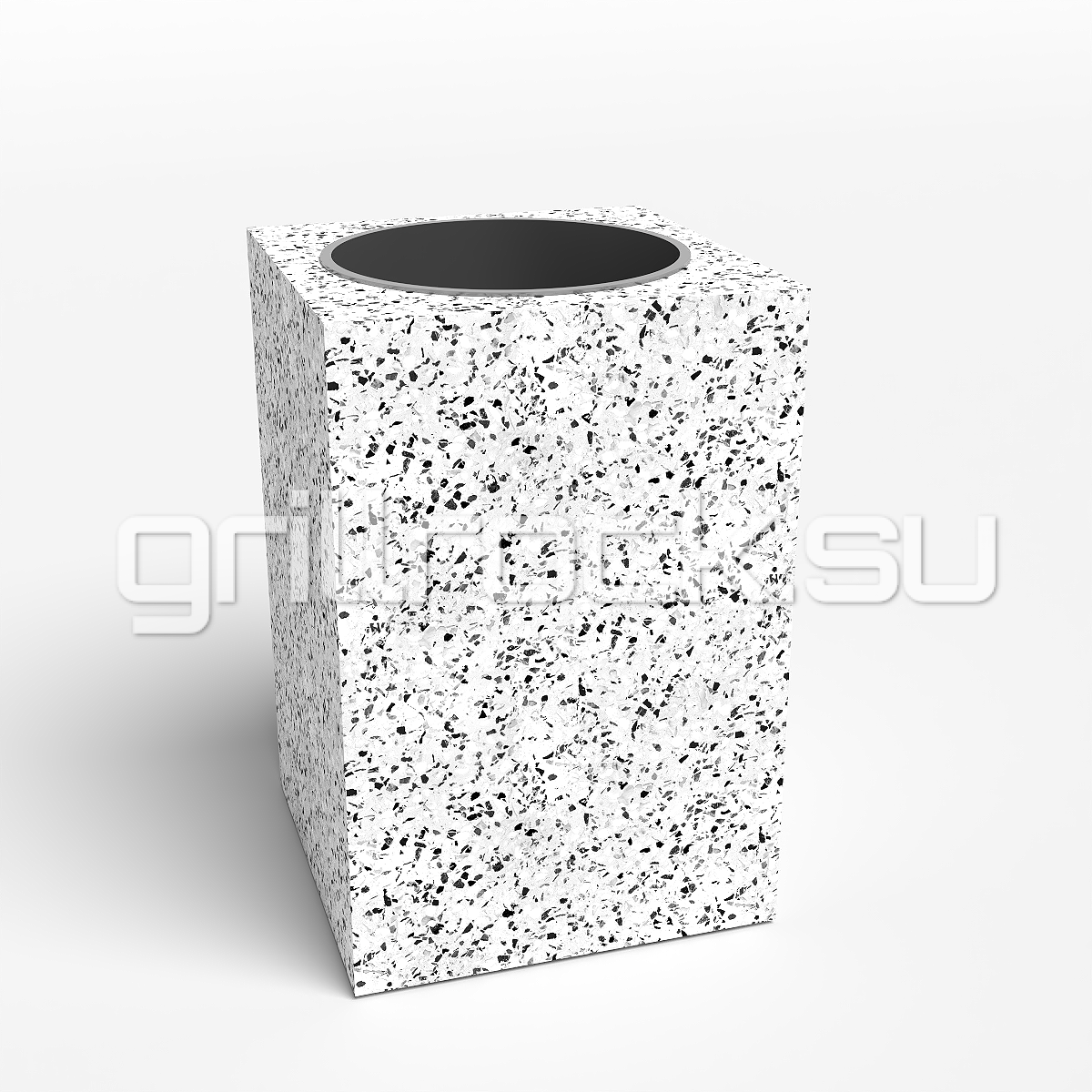 Урна “Квадро 60” одинаково хорошо будет смотреться у входа любого здания, коттеджа или подъезда многоквартирного дома. Изготовлена из смеси высокопрочного архитектурного бетона (марка М350, морозостойкость F300) и натурального камня (серый, чёрный и белый мрамор, «шахматка», красный гранит, Питерский (Московский) гравий). Каменная крошка не наклеена сверху, а находится в составе изделия (фракция от 3 до 15 мм).