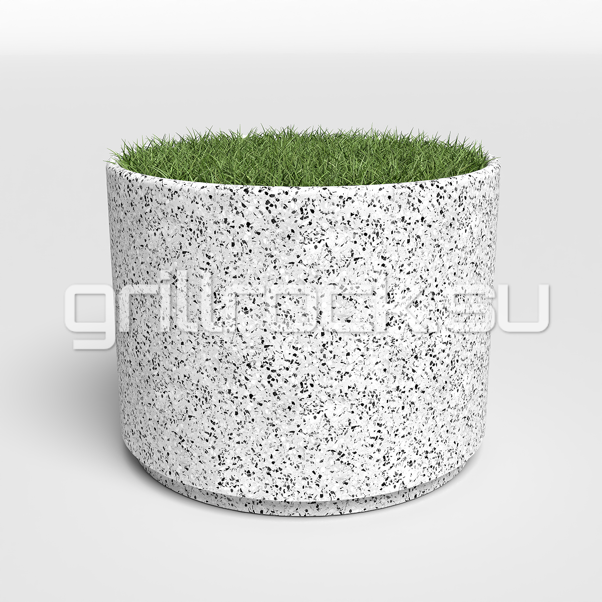 Вазон “Александрия” прекрасно вписывается в любую архитектуру современного города. Изготовлен из смеси высокопрочного архитектурного бетона (марка М350, морозостойкость F300) и натурального камня (серый и белый мрамор, «шахматка», Питерский (Московский) гравий, красный гранит, златолит, Чёрный мрамор (андезит)). Каменная крошка не наклеена сверху, а находится в составе изделия (фракция от 3 до 15 мм).