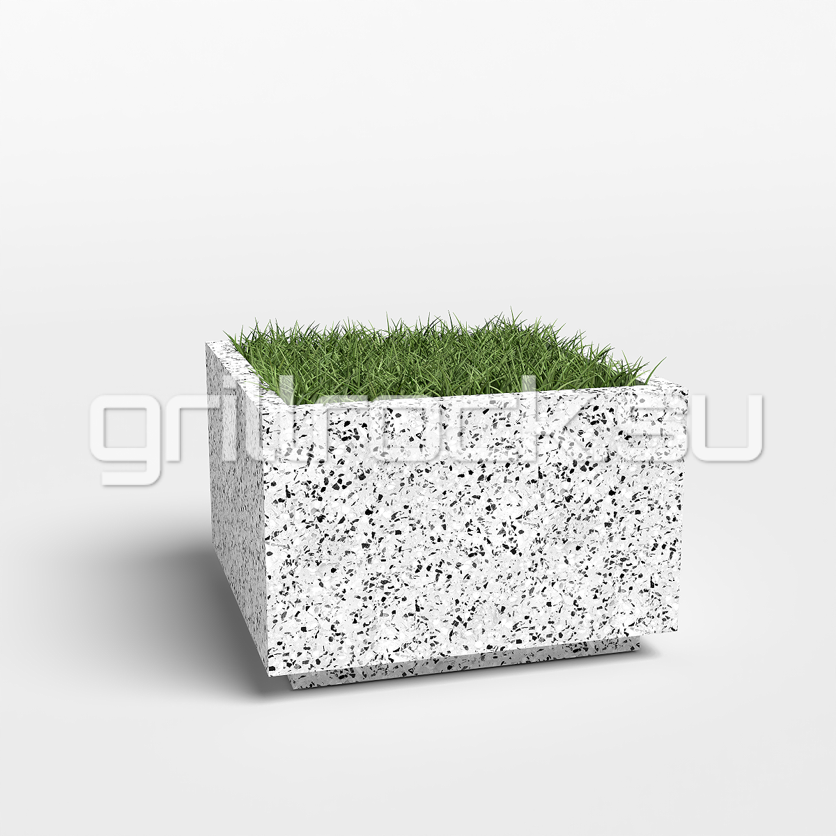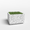 Вазон “Альпина” прекрасно вписывается в любую архитектуру современного города. Изготовлен из смеси высокопрочного архитектурного бетона (марка М350, морозостойкость F300) и натурального камня (серый, чёрный и белый мрамор, «шахматка», красный гранит, Питерский (Московский) гравий). Каменная крошка не наклеена сверху, а находится в составе изделия (фракция от 3 до 15 мм). Подходит для посадки туи (хвойников), кустарников и деревьев небольшого размера.