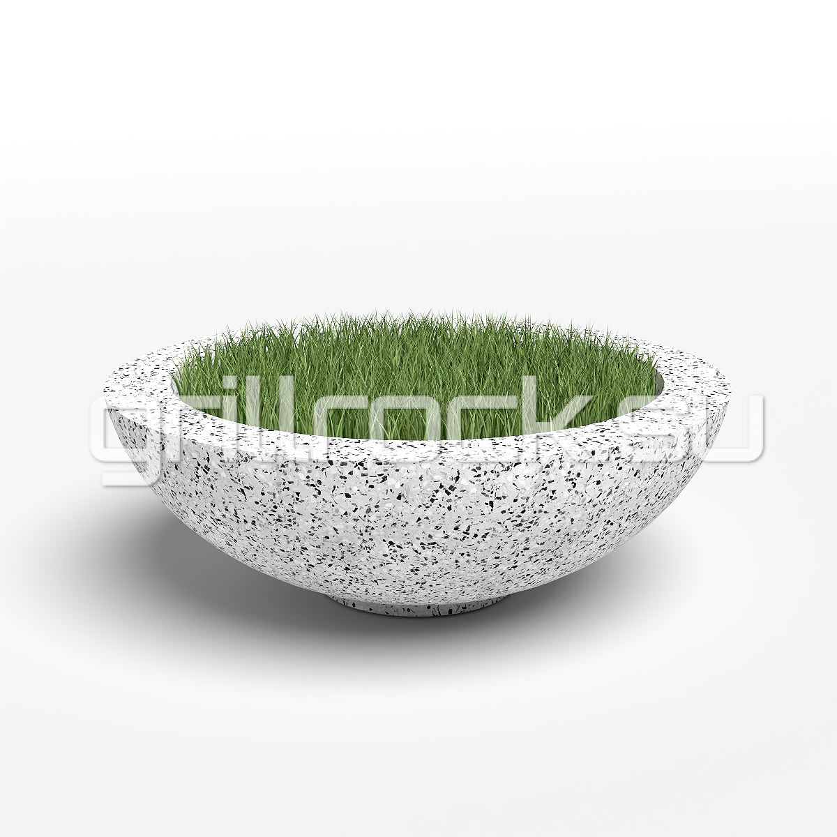 Вазон “Атлант” прекрасно вписывается в любую архитектуру современного города. Изготовлен из смеси высокопрочного архитектурного бетона (марка М350, морозостойкость F300) и натурального камня (серый, чёрный и белый мрамор, «шахматка», красный гранит, Питерский (Московский) гравий). Каменная крошка не наклеена сверху, а находится в составе изделия (фракция от 3 до 15 мм).