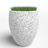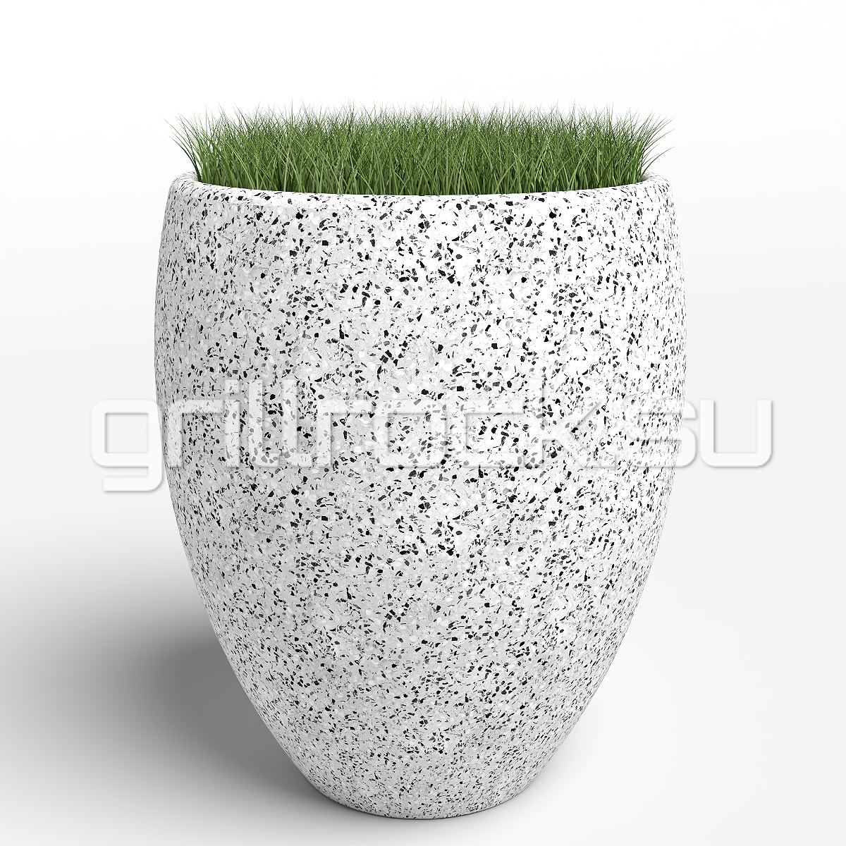 Вазон “Грандпризма” прекрасно вписывается в любую архитектуру современного города. Изготовлен из смеси высокопрочного архитектурного бетона (марка М350, морозостойкость F300) и натурального камня (серый и белый мрамор, «шахматка», Питерский (Московский) гравий, красный гранит, златолит, Чёрный мрамор (андезит)). Каменная крошка не наклеена сверху, а находится в составе изделия (фракция от 3 до 15 мм).