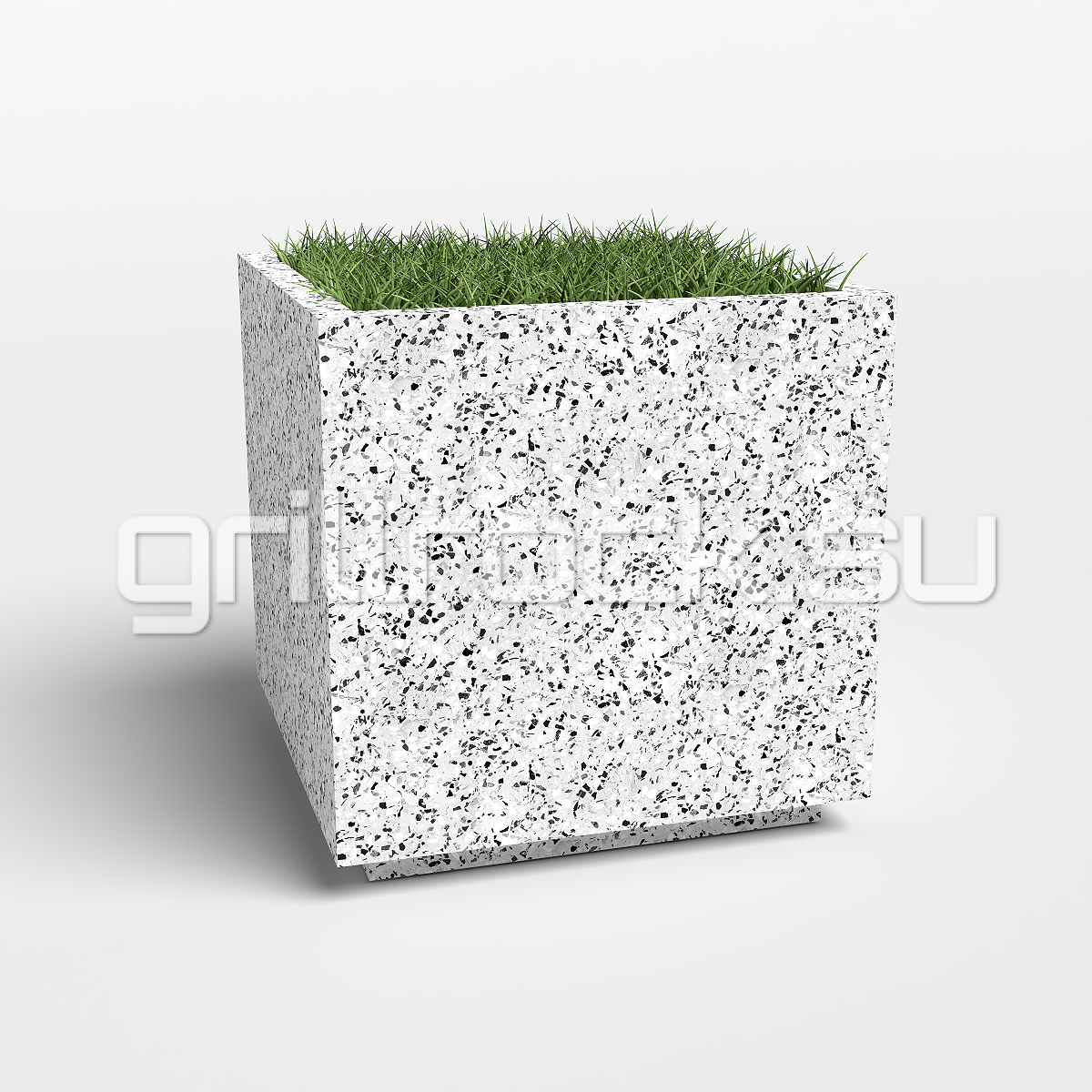 Вазон “Квадрат” прекрасно вписывается в любую архитектуру современного города. Изготовлен из смеси высокопрочного архитектурного бетона (марка М350, морозостойкость F300) и натурального камня (серый, чёрный и белый мрамор, «шахматка», красный гранит, Питерский (Московский) гравий). Каменная крошка не наклеена сверху, а находится в составе изделия (фракция от 3 до 15 мм). Подходит для посадки туи (хвойников), кустарников и деревьев небольшого размера.