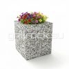 Вазон “Квадро” прекрасно вписывается в любую архитектуру современного города. Изготовлен из смеси высокопрочного архитектурного бетона (марка М350, морозостойкость F300) и натурального камня (серый и белый мрамор, «шахматка», Питерский (Московский) гравий, красный гранит, златолит, Чёрный мрамор (андезит)). Каменная крошка не наклеена сверху, а находится в составе изделия (фракция от 3 до 15 мм).