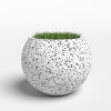 Высокопрочный бетон марки М350. Повышенная морозостойкость F300. Каменная крошка не налеплена сверху, а целиком находится в массе изделия. Снизу имеется дренажное отверстие. Можно сажать небольшие деревья. Вазон является антивандальным.
