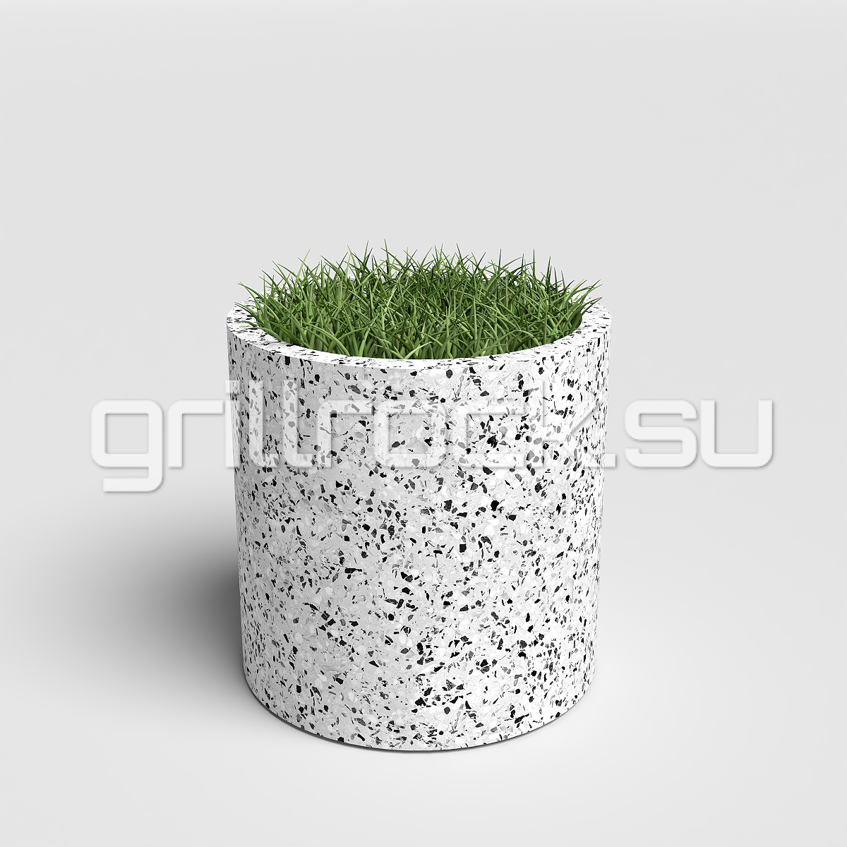 Вазон “Спарта” прекрасно вписывается в любую архитектуру современного города. Изготовлен из смеси высокопрочного архитектурного бетона (марка М350, морозостойкость F300) и натурального камня (серый и белый мрамор, «шахматка», Питерский (Московский) гравий, красный гранит, златолит, Чёрный мрамор (андезит)). Каменная крошка не наклеена сверху, а находится в составе изделия (фракция от 3 до 15 мм).