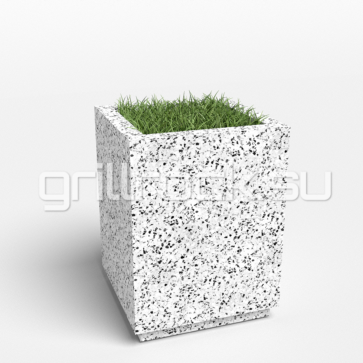 Вазон “Верона” прекрасно вписывается в любую архитектуру современного города. Изготовлен из смеси высокопрочного архитектурного бетона (марка М350, морозостойкость F300) и натурального камня (серый, чёрный и белый мрамор, «шахматка», красный гранит, Питерский (Московский) гравий). Каменная крошка не наклеена сверху, а находится в составе изделия (фракция от 3 до 15 мм). Подходит для посадки туи (хвойников), кустарников и деревьев небольшого размера.